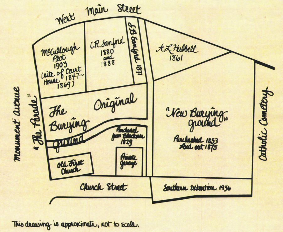 | Conceptual map of the original burying-ground and the lands added over the years. |